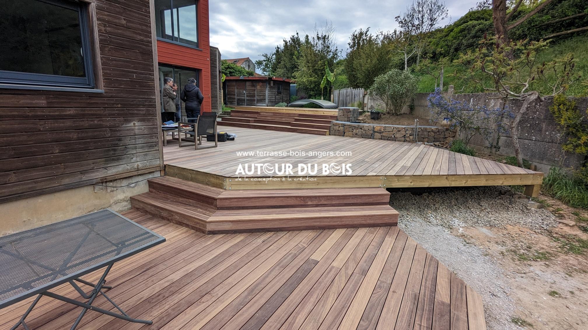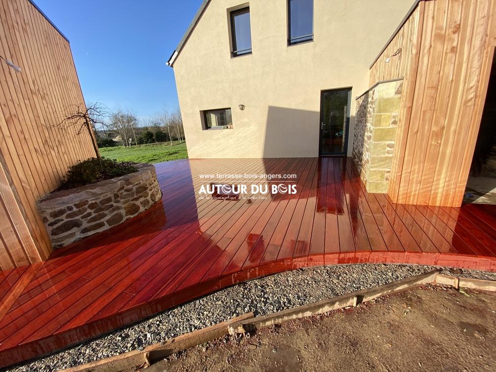 Terrasse sol en bois exotique avec forme arrondie réalisée à Seiches-sur-le-Loir (réf21)Autour-Du-Bois2021-12-07T21:17:56+01:00