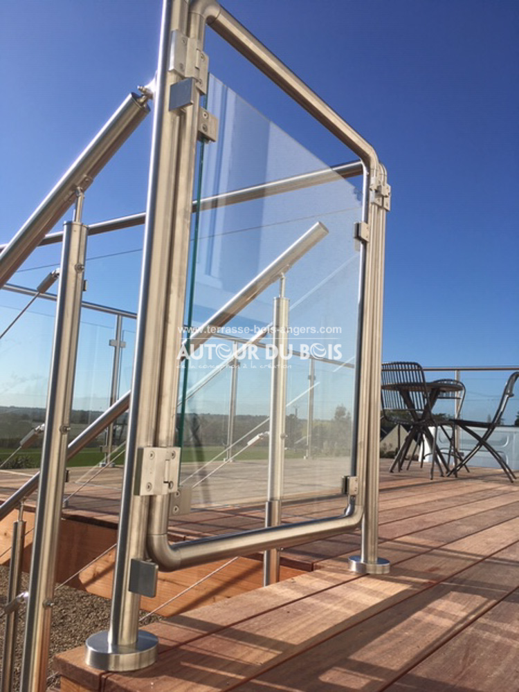 Terrasse bois suspendue avec garde-corps inox et verre Sécurit à Denée – Maine et Loire