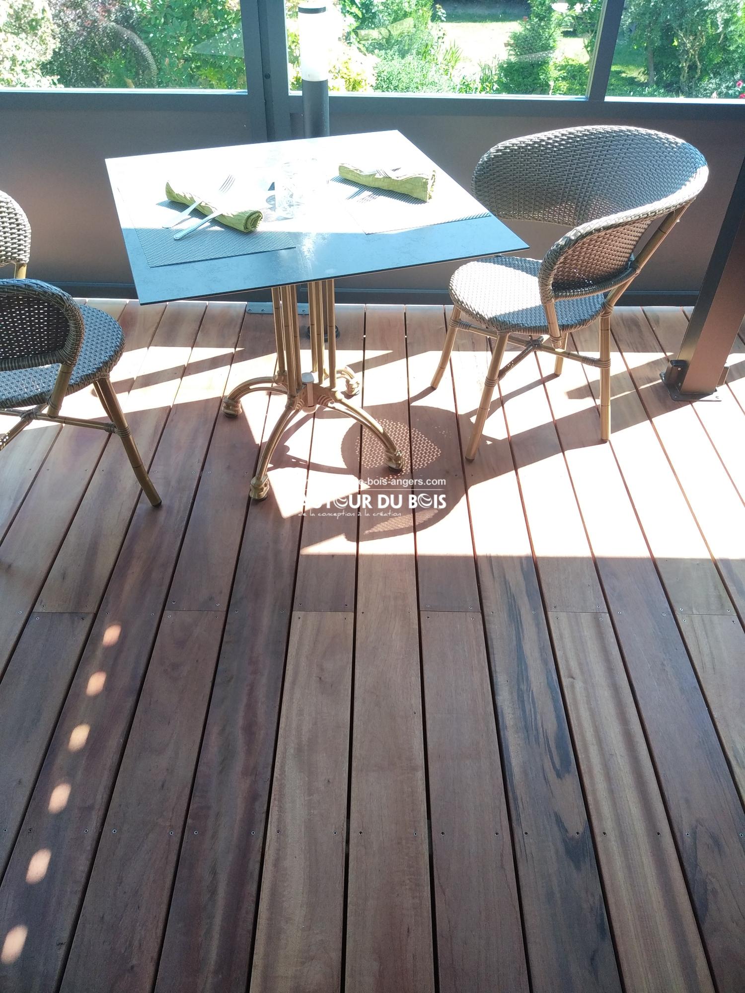 Terrasse sol en bois Exotique Angers (ref 27)Autour-Du-Bois2023-01-27T17:05:50+01:00 Terrasse sol en bois Exotique près d’Angers Une terrasse bois Exotique Restaurant Angers Maine et Loire 49 Réalisation d’une terrasse sol en bois exotique pour un restaurant bien connu des Angevins. Référence projet N°27 Retour aux projetsDemander un devis